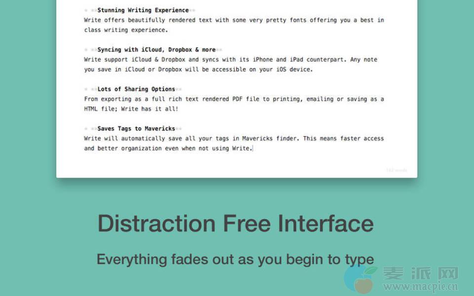 想要导出您的笔记或将其发布为网页?没问题,Write已经覆盖了你。有了完整的MultiMarkdown 4支持,您可以导出格式正确的HTML与表,参考和图像。