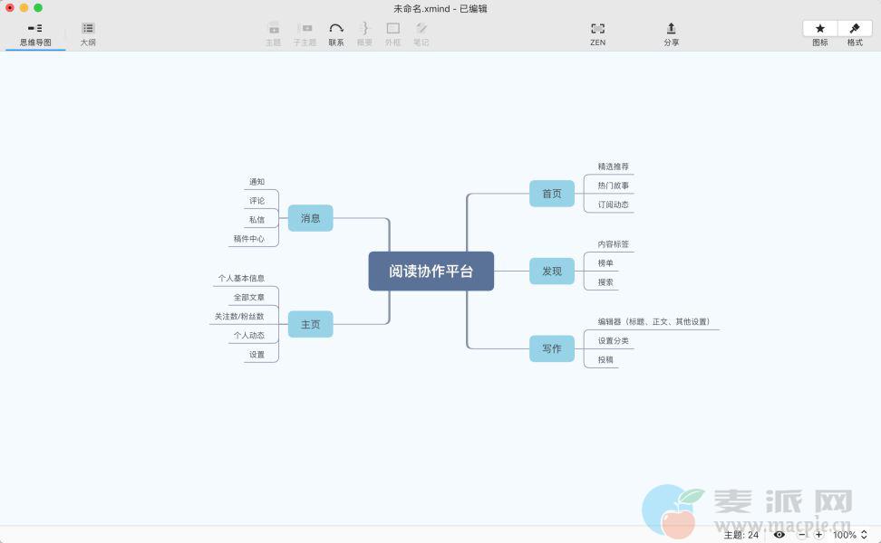 ZEN 模式让你专注于思维导图本身。在 ZEN 模式下,你可以集中火力,全神贯注地进行思维的发散和整理,得出更好的解决方案。