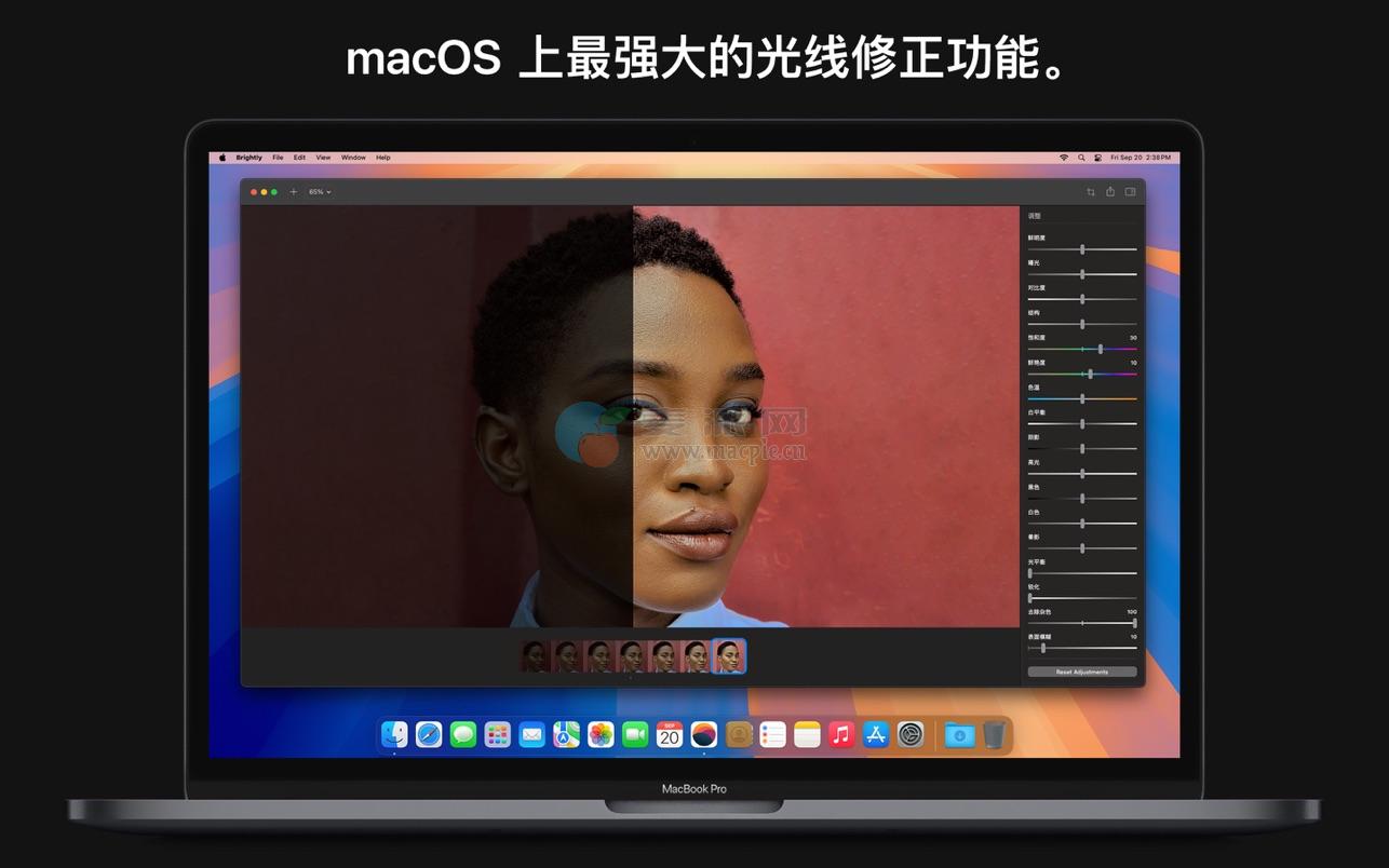Brightly Pro 从头开始为 macOS 设计。在 macOS Sequoia 上看起来很棒,与照片应用程序和相机无缝集成,支持暗色模式,使用 Metal 提升性能,并针对搭载 Apple 芯片的 Mac 进行了优化。