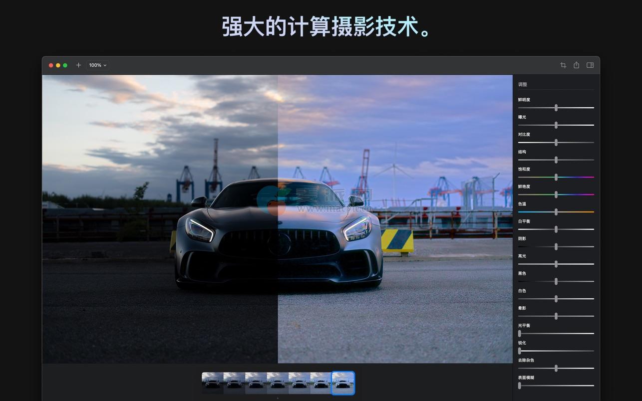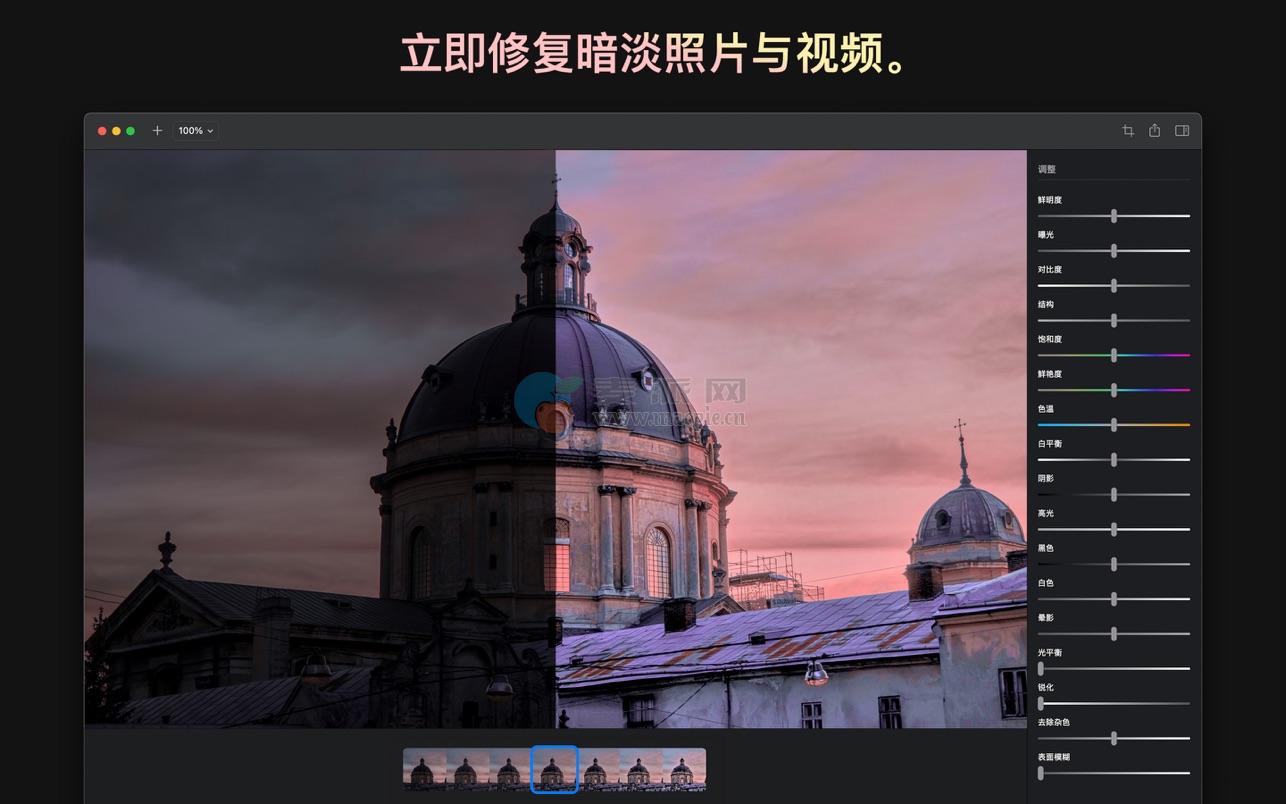 通过一个滑块,Brightly Pro 自适应地即时调亮您的照片,展现隐藏的细节,同时保持光暗之间的宜人平衡,不会过度曝光已照亮的区域。Brightly Pro 还可以调亮视频,并在时间上平滑地应用光照变化。使用一整套专业级调整功能来微调您的结果,并通过必备的专业功能(如 RAW 照片和 4K 视频)将您的编辑提升到新的水平。