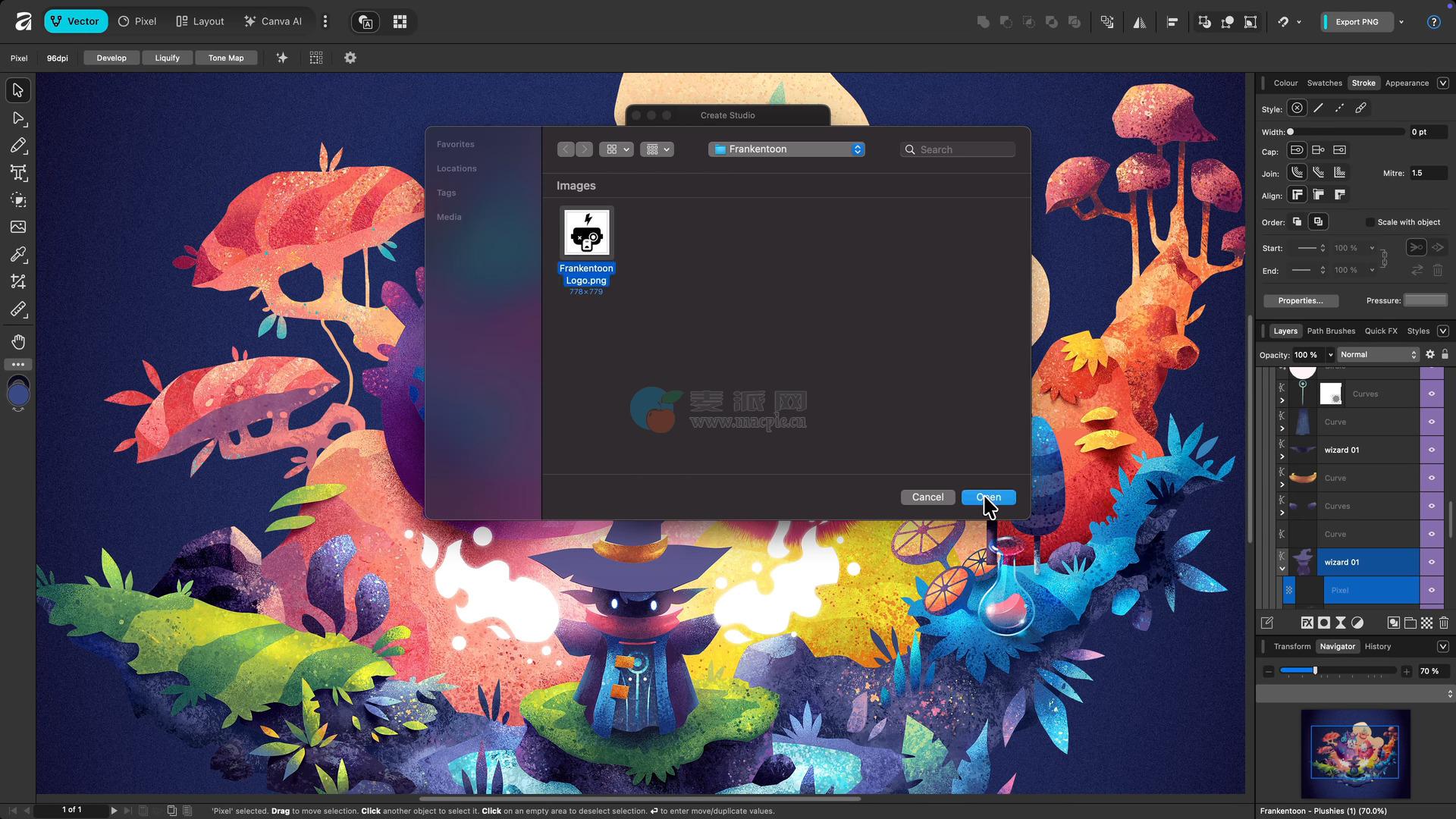 一个适应你的应用,而不是相反。Affinity带有内置的矢量、像素和布局工作室,但您不会被锁定。重新排列面板,混合搭配您喜爱的工具,打造定制工作室。您可以保存多个设置,通过点击在它们之间切换,甚至与其他人共享或下载他们的设置。这是适应您工作流程的定制。