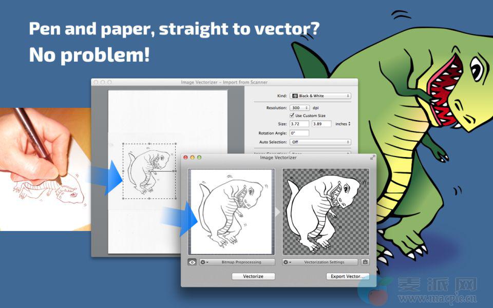 Image Vectorizer允许您直接从扫描仪导入并将结果转换为矢量。非常适合手绘图形甚至文档扫描。