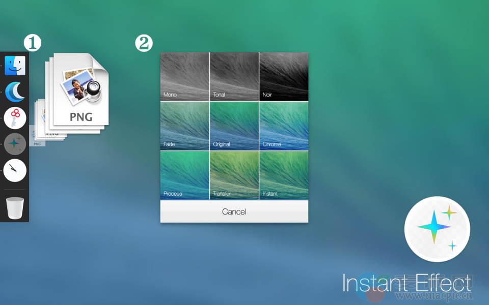它非常易于使用:只需将图像拖放到 Dock 中的应用程序图标上即可应用某些效果。