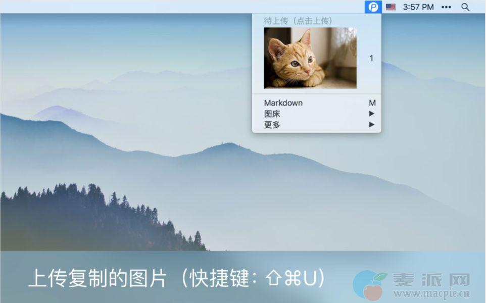 - 复制图片后上传,当复制图片后,该图片会出现在iPic菜单中待上传区域。如果需要上传,点击菜单中该图片即可。手动上传比较适合临时上传少量图片。除了手动点击菜单,还可以使用快捷键 Command + Shift + U 上传。当然,可以在偏好设置中修改此快捷键。