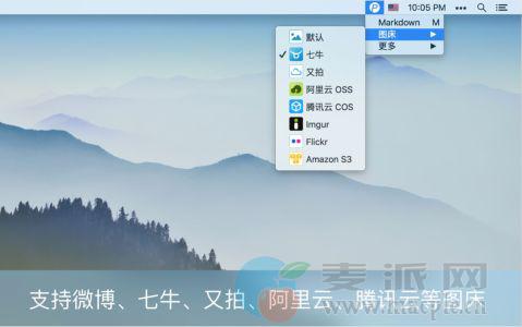 - 支持下列图床:微博图床(即默认图床)、七牛云、又拍云、阿里云 OSS、腾讯云 COS、Imgur、Flickr、Amazon S3