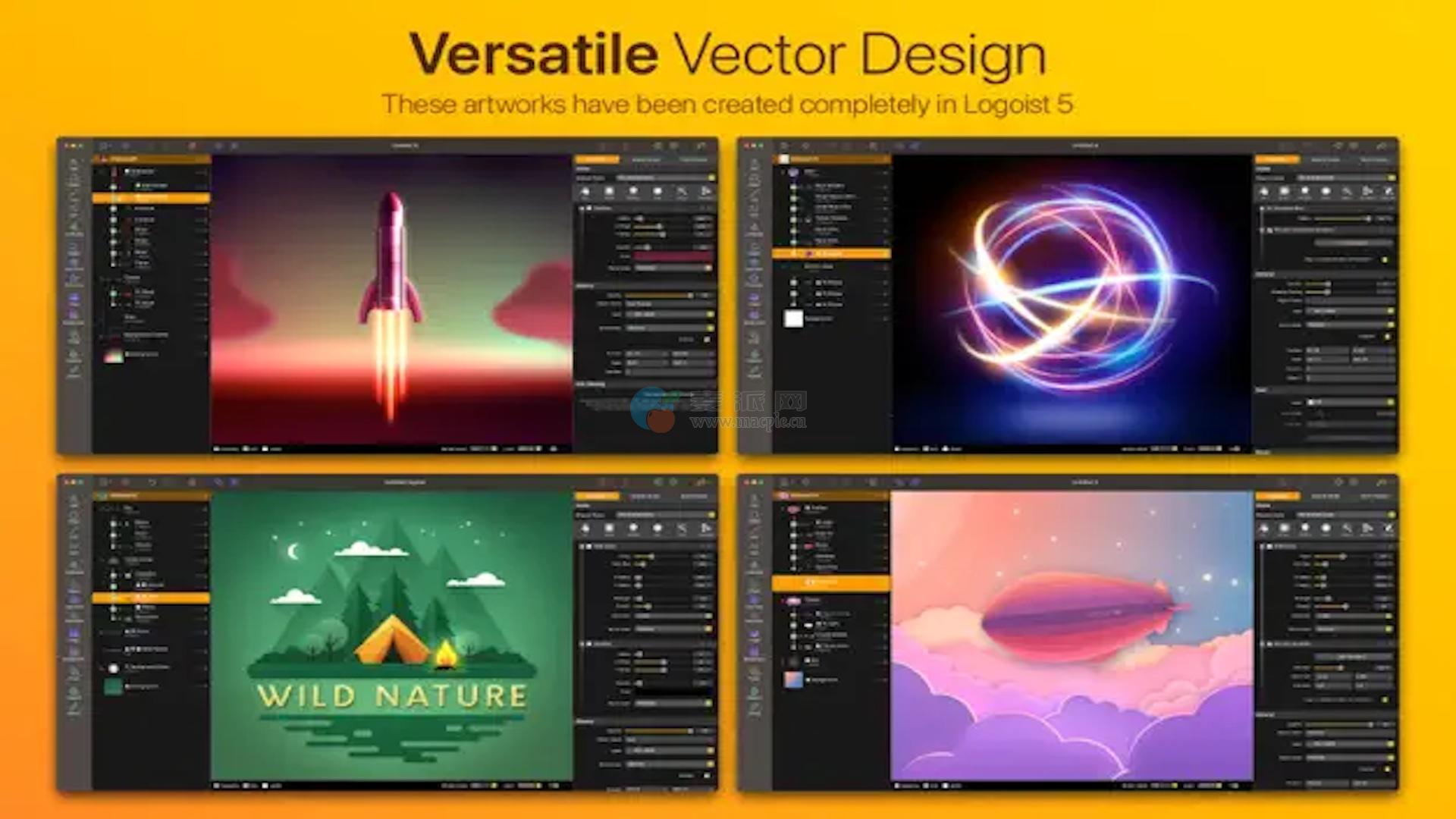 使用Logoist 5创建令人印象深刻的图像和矢量图形–从简单的布局到复杂的设计。Logoist 5提供了让你的创意成真或激发新灵感所需的一切。Logoist 5专为专业设计师和图形艺术家以及初学者开发,不仅提供了大量的模板,确保没有任何矢量应用经验的用户可以轻松入门,而且还为专业用户提供了强大的工具。