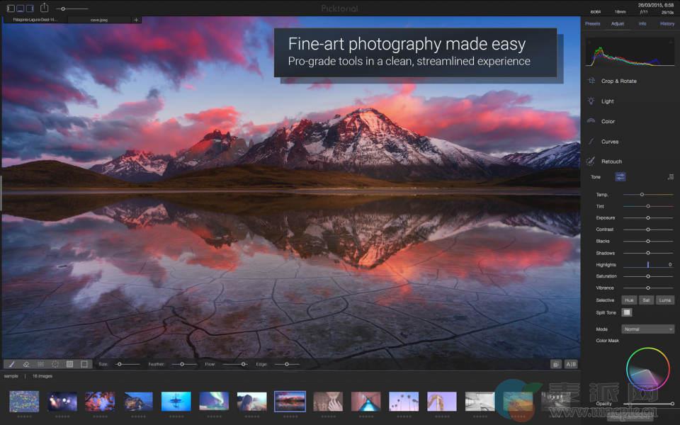 Picktorial是一款功能强大,专业、流畅且直观的照片编辑器,可提供增强和修饰照片的工具。Picktorial可以用作OS X Photos的扩展,也可以用作独立应用程序。