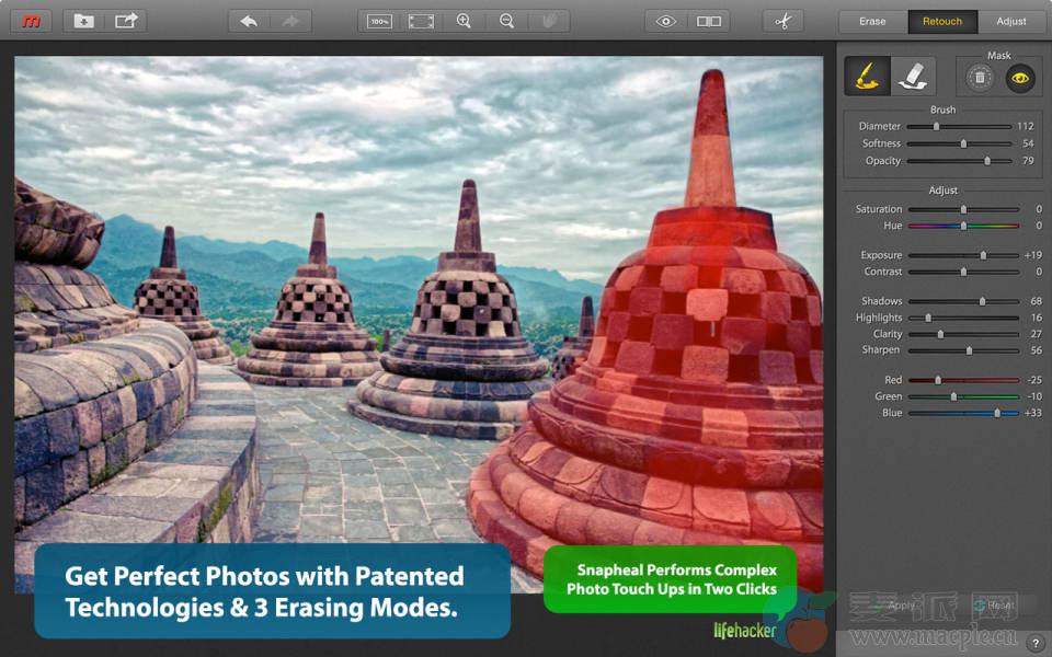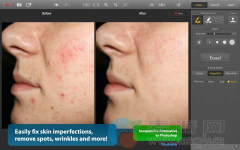 可以用作Lightroom,Photoshop的插件,光圈和Apple相机的扩展。   方便的图像编辑工具箱 擦除后可以增强你的照片效果或进行美化。