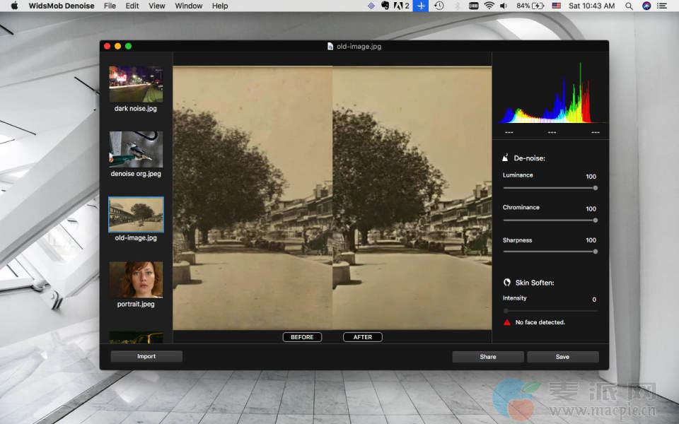 一键点击美化照片。您可能比以往更多地使用智能手机或其他设备拍摄照片,这些照片包含胶片颗粒,JPEG压缩伪影和其他缺陷。即使使用摄像机,亮度噪声和色度噪声也是不可避免的。WidsMob Denoise是全方位的降噪软件,可以在没有噪音的情况下获得更好的图像。