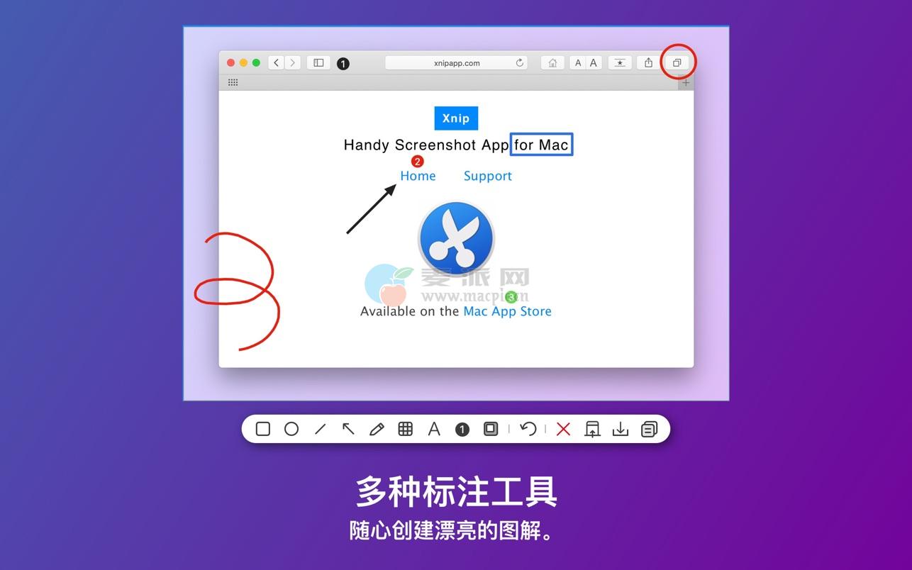 Xnip 拥有齐全的标注功能,简单易用,您可以对截取的图片进行标注,在标注的同时还能重新调整截图大小。