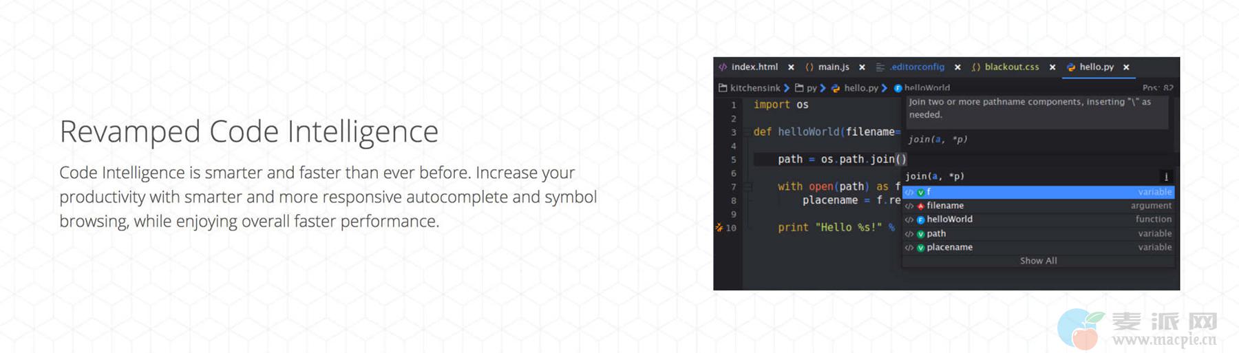 - 更快的编写代码,并缩短与代码完成,你的工作,指导您的学习曲线
