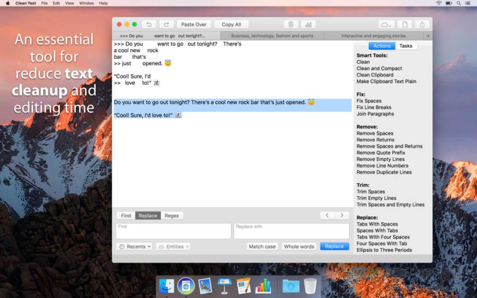 对于网站管理员,平面设计师,开发人员和杂志编辑来说,干净文本是减少文本清理和编辑时间的必备工具,对于需要清理和编辑电子邮件,文档或其他文本的所有Mac用户来说,这是一个非常方便的工具。
