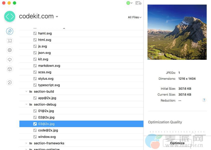 CodeKit为JavaScript 提供合并、压缩以及错误检查,优化 jpeg 和 png 格式的图片。CodeKit所有功能是基于 Project, 因此你必须先创建一个 Project,按 + 选择你的项目目录,或者直接拖拽进来。