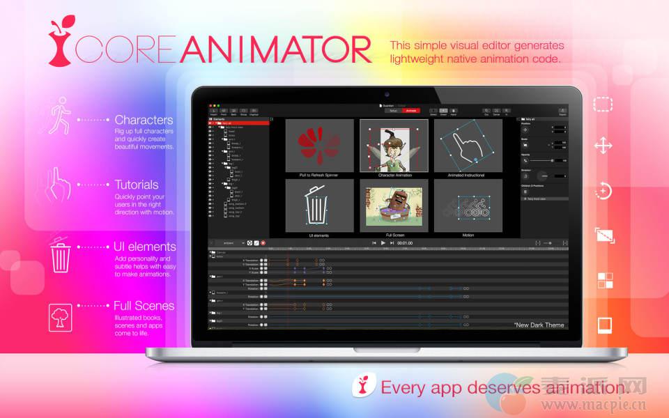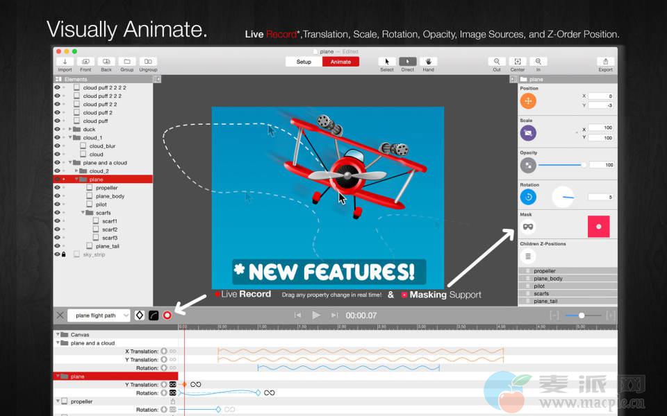 支持关键帧动画,你可以指定的图层属性的关键路径动画,包括动画的每个阶段的价值,以及关键帧时间和计时功能的一系列值。在 动画运行是,每个值被特定的插入值替代。核心动画 和 Cocoa Animation 同时使用这些动画类。使用动画描述,是因为这些类涉及到核心动画,这些将会在Animation Types and Timing Programming Guide 有较深入的讨论。