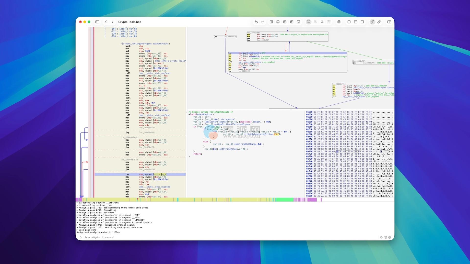 Hopper反汇编肯定会帮助你反汇编任何二进制文件,并为你提供关于其内容、程序、变量堆栈、列出所有对象等所有信息。从2.0版本开始,Hopper可以使用GDB来调试软件。充分分析控制台应用程序是很自然的,因为没有图形。