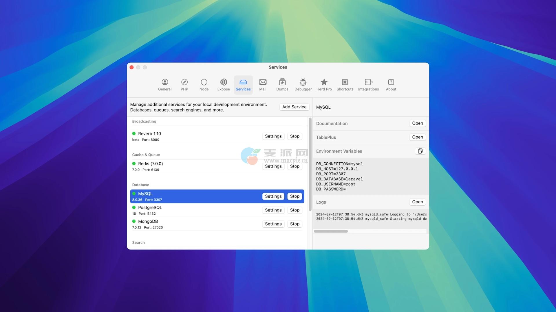 一键启动/停止数据库和沙克:MySQL、PostgreSQL、MariaDB、Redis、Memcached、Meilisearch、Typesense、MinIO、Laravel Reverb