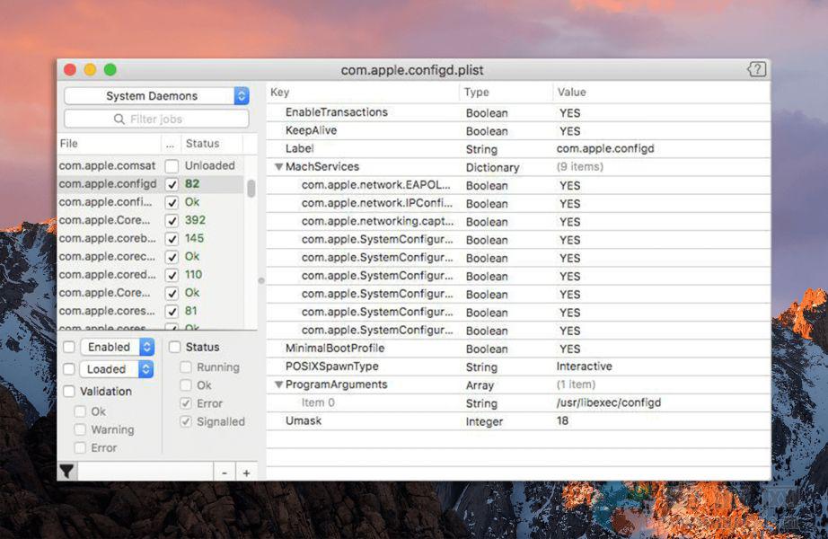 通过LaunchControl,您可以一目了然地看到所有服务及其各自的状态。突出显示无效的服务,并提供问题描述。您可以通过单击启用或禁用服务。加载,卸载和临时启动也是如此。可以通过作业名称和/或各种属性过滤长列表的作业,从而帮助您即时找到所需的内容。
