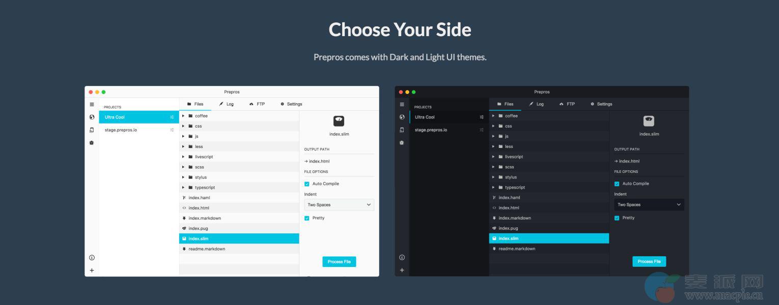 - 编译简单:Prepros可以轻松编译 LESS、Sass、SCSS、Stylus、Jade、CoffeeScript、Haml和MarkDown。