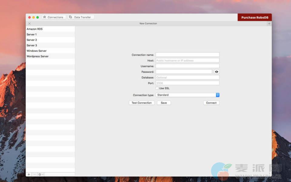 RoboDB被设计用于多种类型的MySQL远程连接。您可以使用标准,套接字或SSH类型连接进行连接。