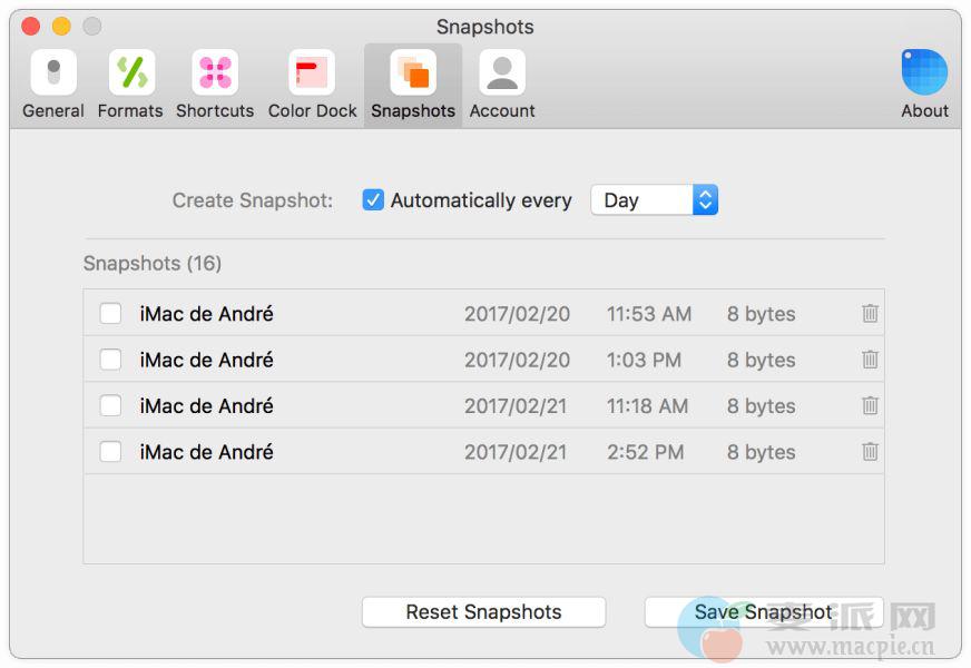 还具备快照保存能力,与搜索引擎的网页快照一样,它可以实现按每分钟、每小时或是每天为单位自动保存 Sip 中的每一类数据,或者也可以手动保存快照。