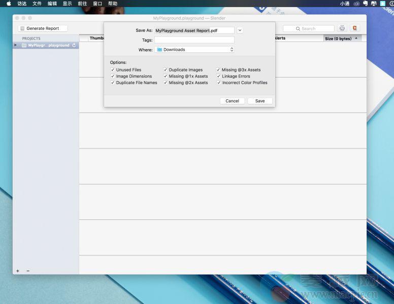 Slender for mac 可以告诉你哪些资产文件不会被在Xcode项目中使用,同时你也看到哪些资产缺少他们的@1X同行,或者如果你的@2X图像有不正确的像素尺寸。还可以暴露retina 问题,闲置资产,浪费的空间,和设计师的错误,这款软件非常的实用。