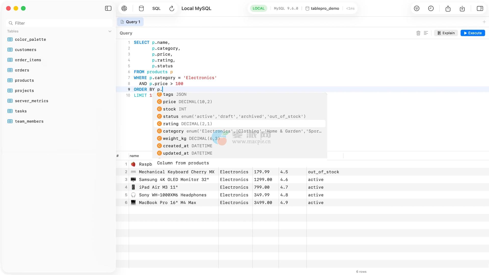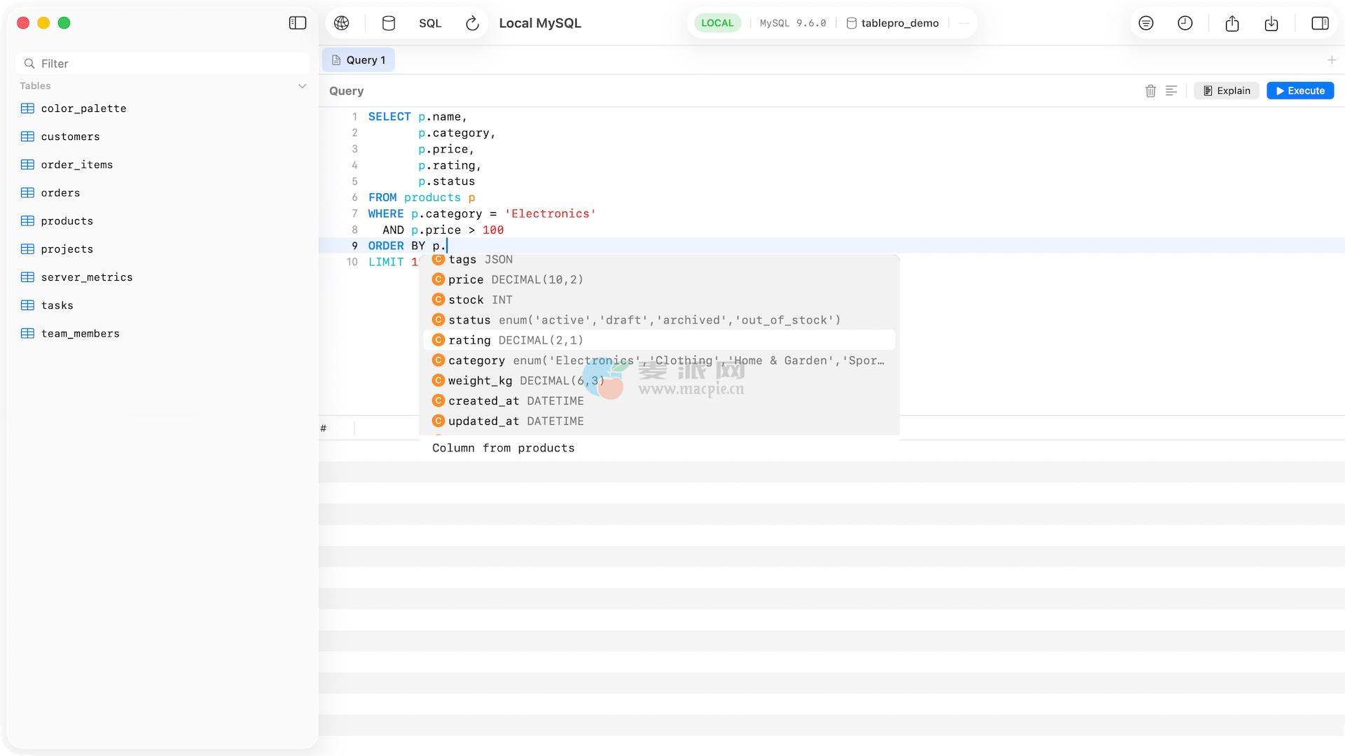 TablePro专注于性能和可用性,提供了强大的SQL编辑器、直观的数据网格和安全的连接选项,使其适用于日常查询和复杂的数据库工作流。
