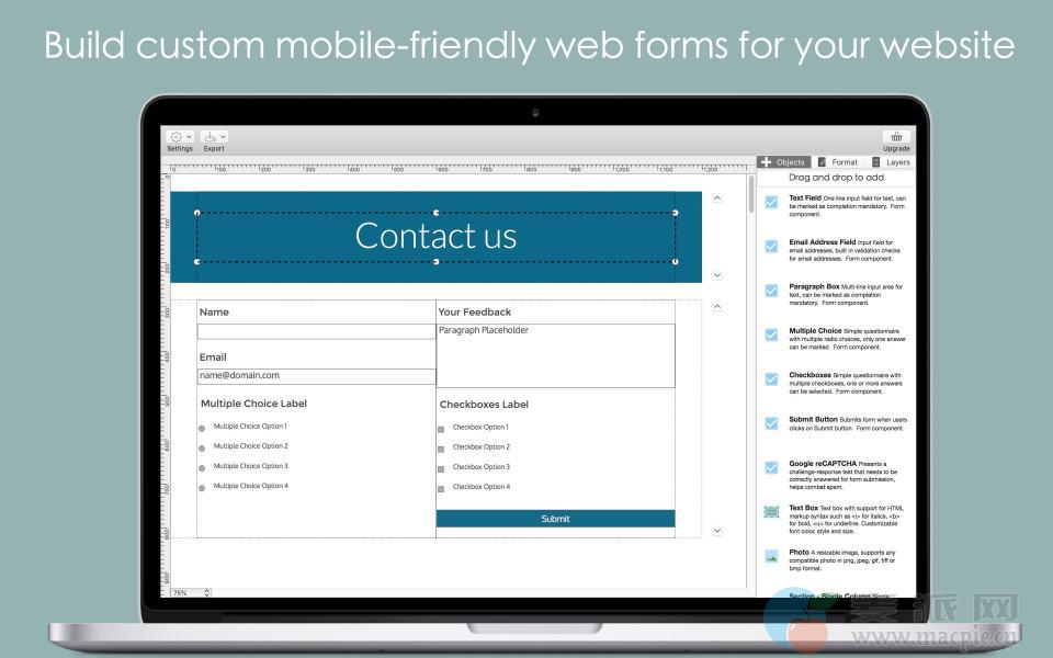 Wolf Forms 2 For Mac,以PHP格式构建适合移动设备的Web表单。此应用程序是适用于Mac的Wolf设计产品套件的一部分。