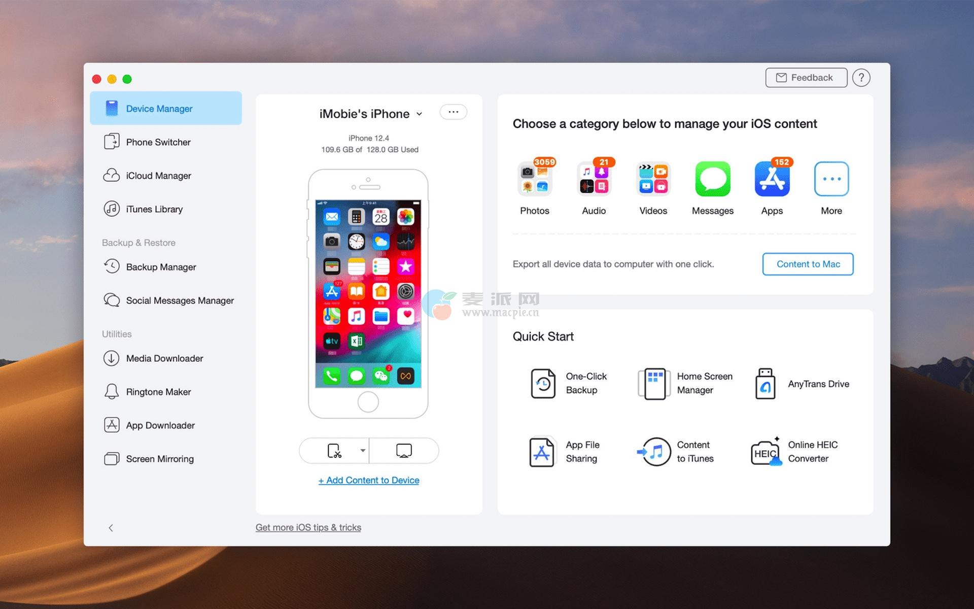 AnyTrans是一款iPhone管理器,它打破了同步边界,将所有内容的访问整合在一个地方,包括音乐、视频、照片、消息、书籍、Safari历史记录、语音备忘录等。