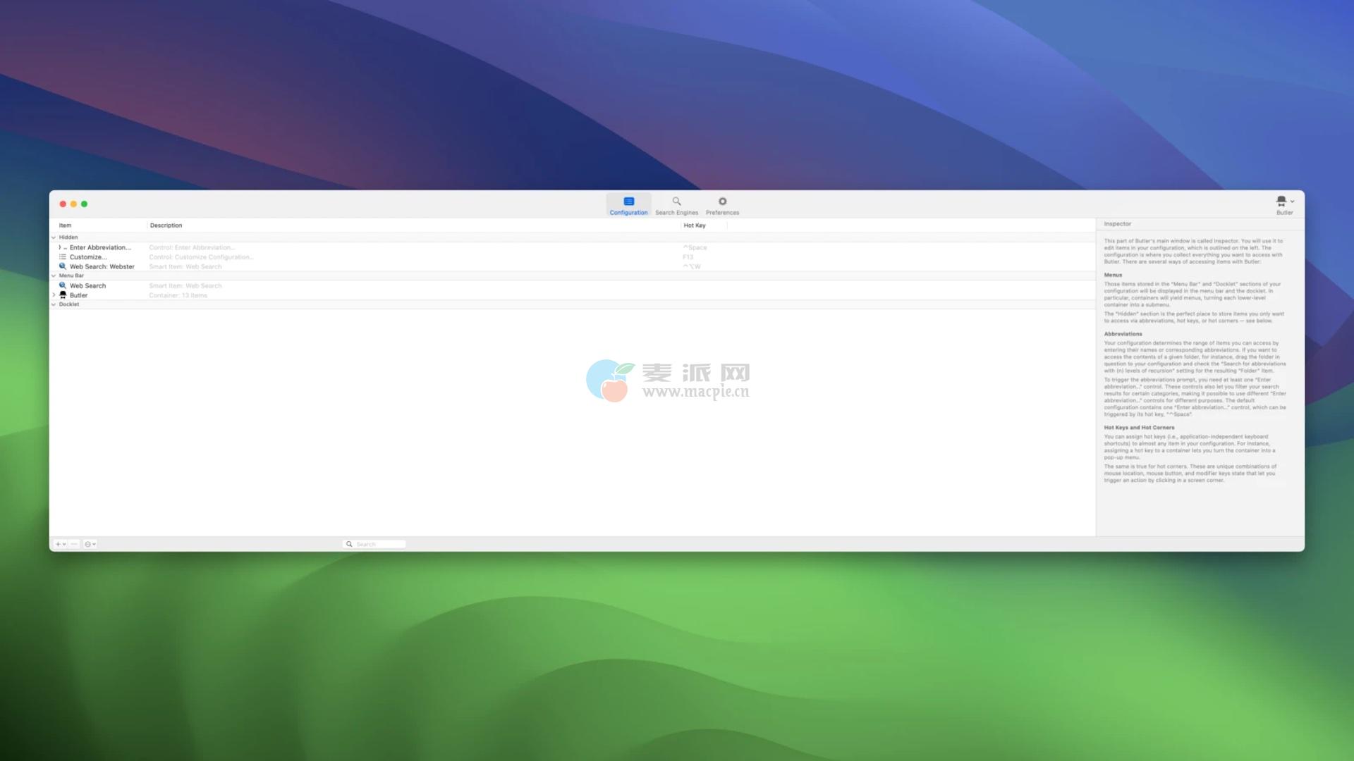 还有一个内置的工具,用于从菜单栏或热键搜索网页。经理更多的是在服务的其他地方,但用户可以附加其他服务。一个独立的模块专门用于指导最常见的多个文本片段,类似于剪贴板。Butler还允许您复制文件、管理iTunes、更改系统设置和其他功能。