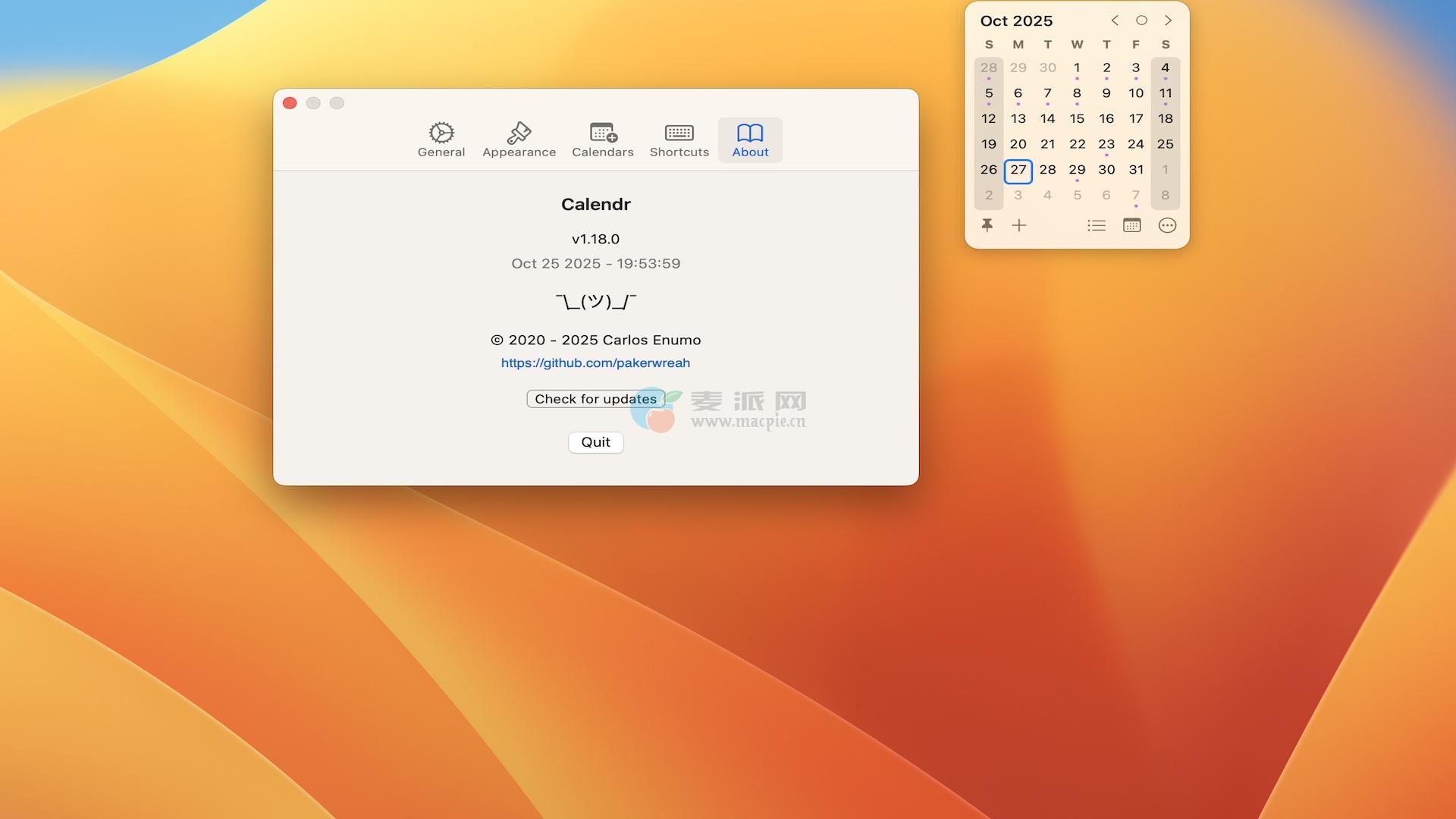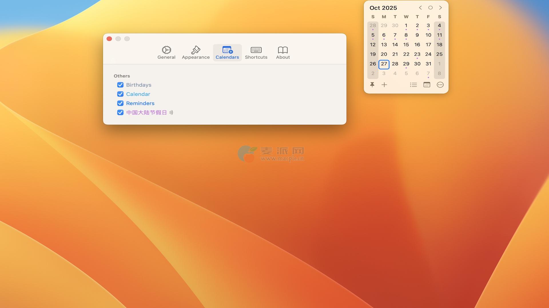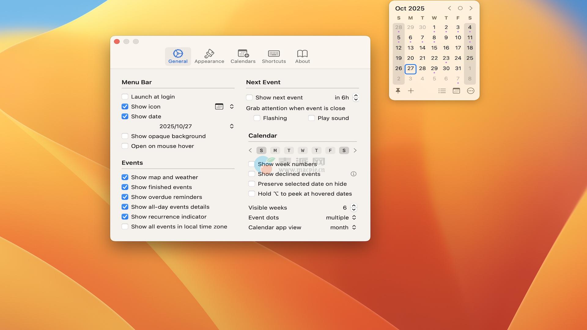 Calendr是一个易于使用、可定制的macOS菜单栏日历。