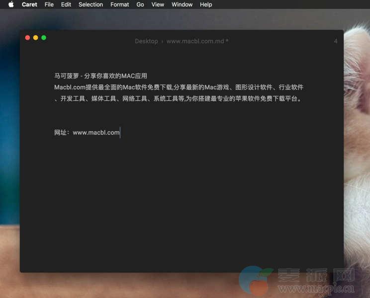 Caret Mac版这款软件提供了一键预览文章的组合键(-+P),在界面定义上,Caret 与 Ulysses 等一样,有 Focus Mode,Night Mode,自定义字体大小,自定义字体集(只有三种西文字体可选)和三个主题可选。