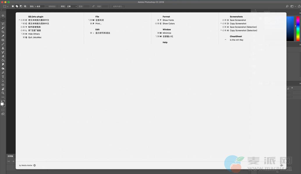 - 只需长按住 ⌘-command键 就可以显示当前程序的快捷键列表,操作简单方便。