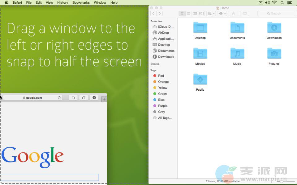 Cinch for Mac可以将屏幕左右和上方边缘变为热区,将窗口移动进去可相应让窗口填满左/右半屏,向上则为最大化。