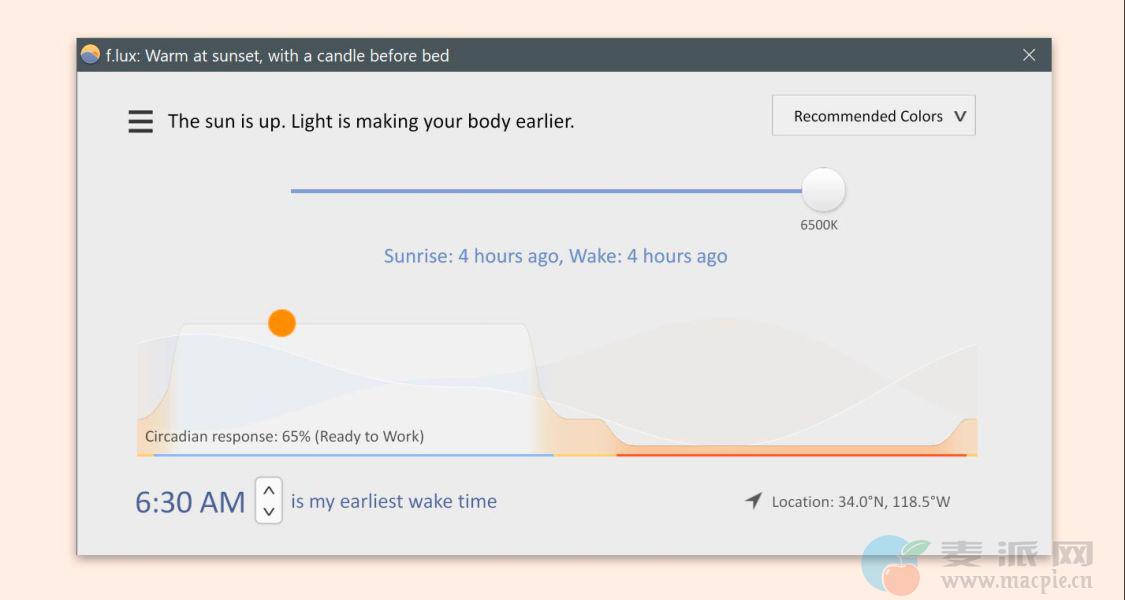 f.lux能根据你所在地理位置,获取当地时间,随着一天时间变化自动调整你电脑显示器屏幕的色温亮度。