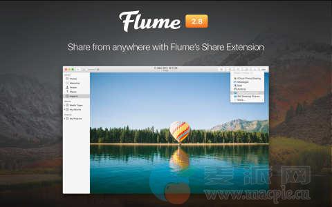Flume是一个原生应用程序,支持系统共享对话框,Apple Maps,拖放等等。