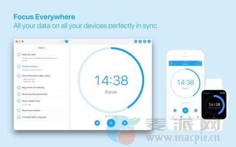 在Mac,iPad,iPhone和Apple Watch上无缝使用Focus。使用iCloud在您的设备上同步; 使用Handoff在另一台设备上获取当前工作,并使用iCloud Push获取最新数据。