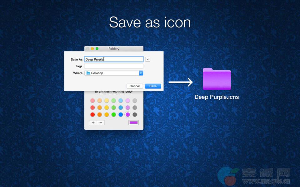 Foldery for mac是一款专为苹果电脑用户打造的图标编辑工具软件。用户安装了这款软件后,就能够将电脑中一成不变的图标进行重新编辑、修改,用户可以选择自己喜欢的颜色,将突变重新自定义,从此让你的桌面丰富多彩,拒绝一成不变。