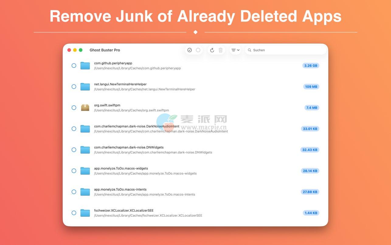 Ghost Buster Pro再简单不过了。应用程序启动后立即开始搜索。现在只需单击一下即可删除文件。