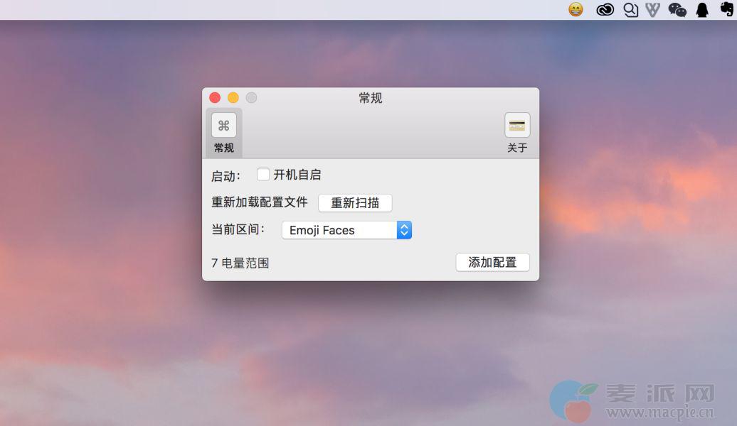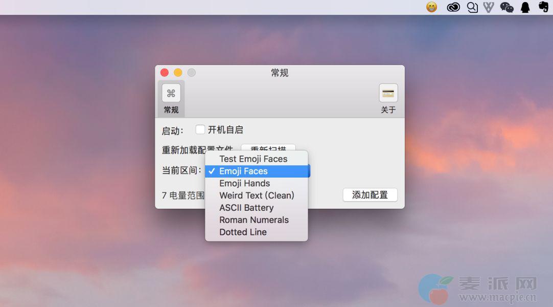 默认的电量表情是一套从开心、淡定到愤怒、骷髅的表情,Juice 中还有其他几套表情供你选择,手势表情、罗马数字表情等。点击「偏好设置」,在「当前区间」中进行选择即可。