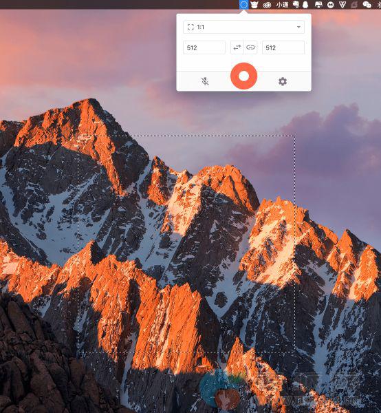 点击上面的红色按钮,这时会出现一个小框框,就是屏幕录像的范围了。当然你也可以通过拖动它的边缘来随时变换大小和位置,之后再点击一下红色按钮就可以开始录屏了。要结束时只要点击一下菜单栏上 Kap 的图标就可以停止了。