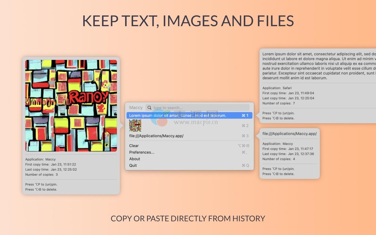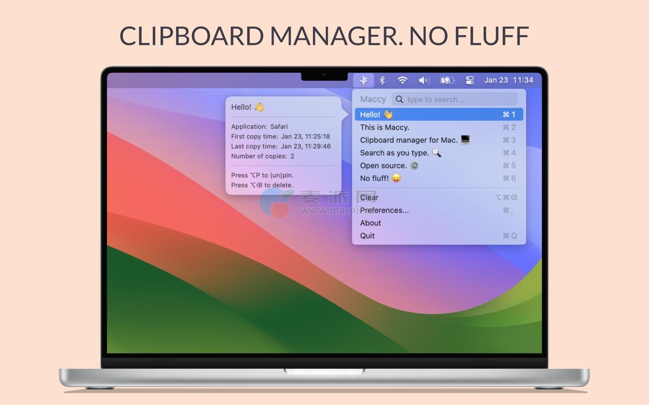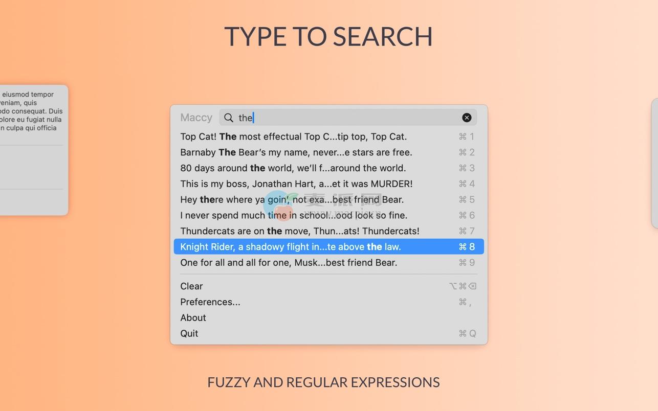 Maccy是用于macOS的轻量级剪贴板管理器。它保留了您复制的内容的历史记录,并允许您快速导航、搜索和使用以前的剪贴板内容。