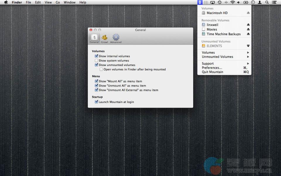 从菜单栏快速直观地管理Mac卷。轻松自定义Mountain以满足您的需求。