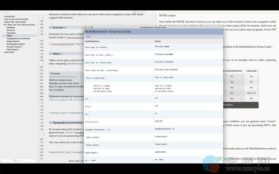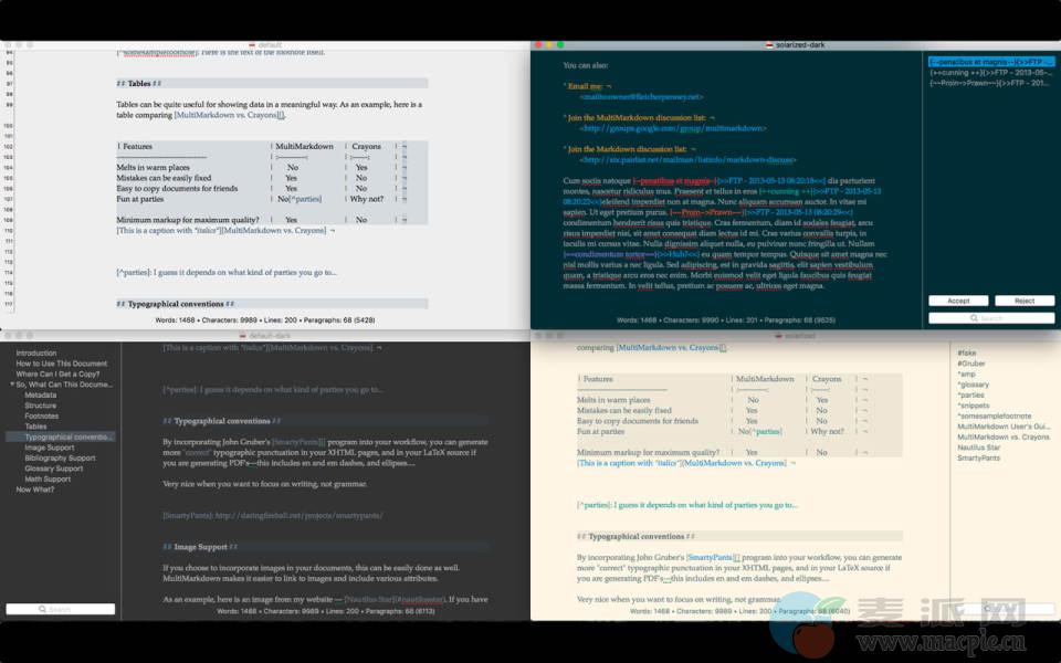 MultiMarkdown Composer是MacOS的文本编辑器,专门针对MultiMarkdown语法设计。