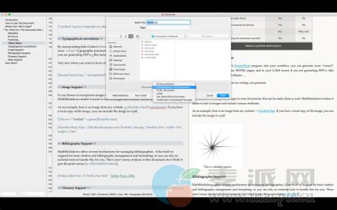 现在每个Markdown / MultiMarkdown编辑器都提供实时预览,但其中大部分都不是那么复杂。MultiMarkdown Composer的预览可以确保您正在输入的文本和预览的相应部分排列在您所期望的位置,因此即使在复杂的文档中,您也可以轻松查看工作结果。此外,预览引擎在过去六年中一直在不断完善,以确保尽可能提供最佳性能,即使在长文档中也是如此。