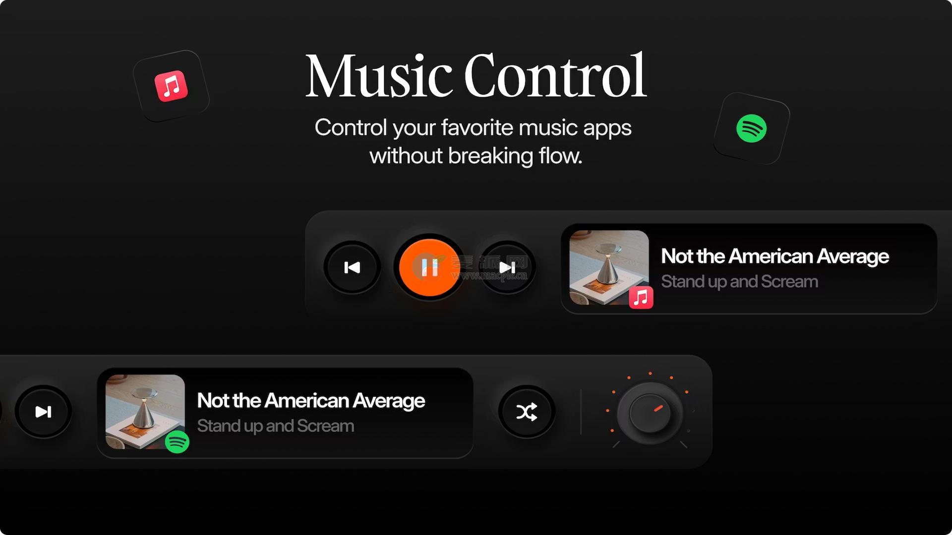 直接从Notch控制Apple Music和Spotify播放