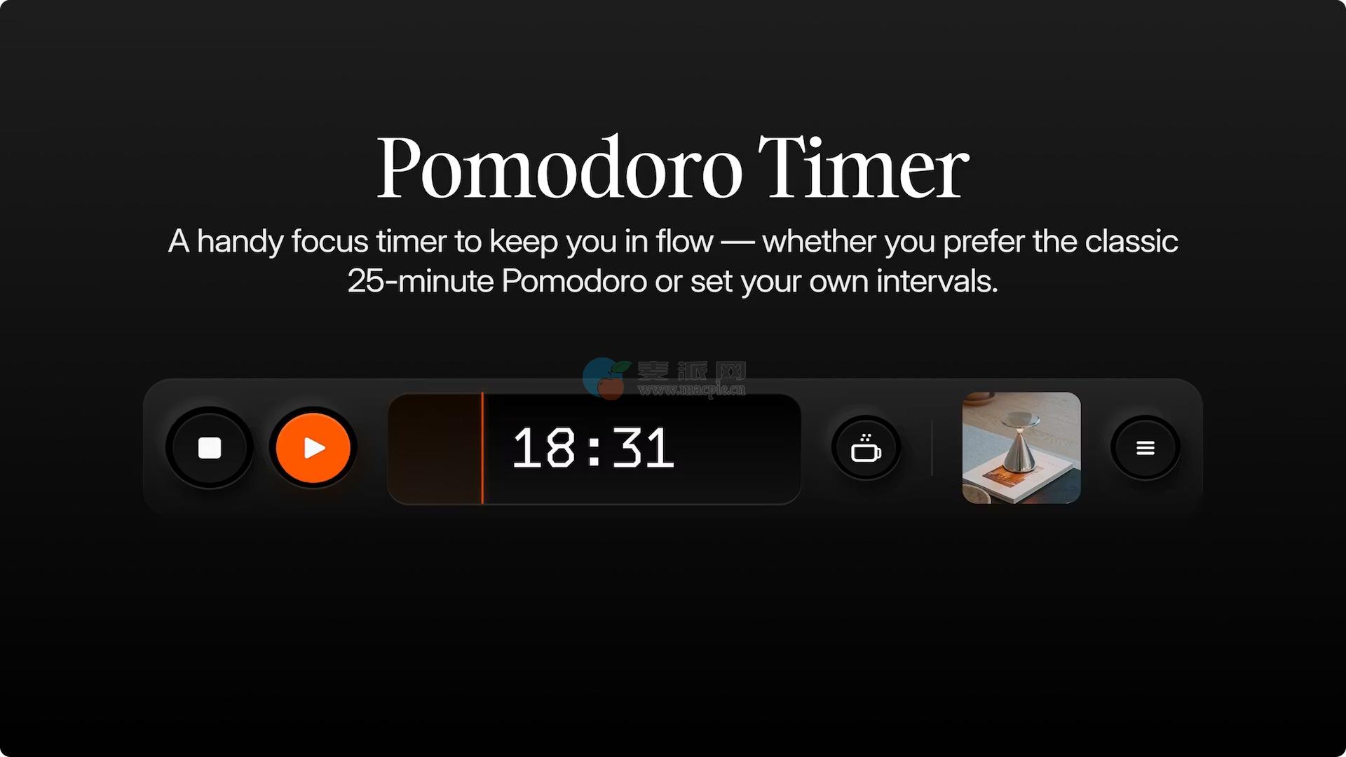 经典的25分钟聚焦间隔,有短暂休息