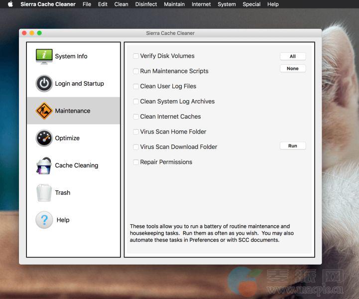 Sierra Cache Cleaner Mac版是一款macOS平台的系统清理软件,Sierra Cache Cleaner使mac OS系统的维护变得更加简单,拥有简单直观的界面,提供许多服务OS X Mavericks系统功能。无论新手还是专家用户都将欣赏MCC提供的强大的工具集。