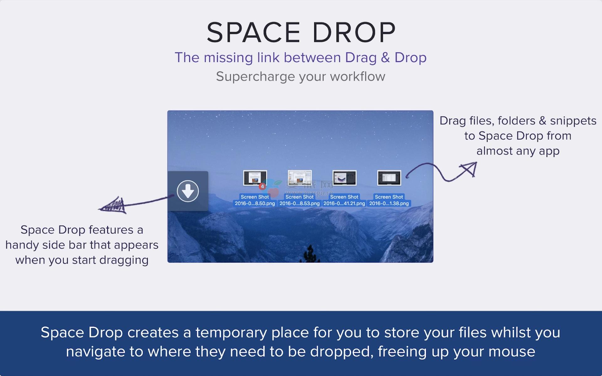 Space Drop对于想要真正加快工作流程的Mac用户来说是一个重要的实用工具。在“我们喜爱的新应用”一节中标明了苹果!