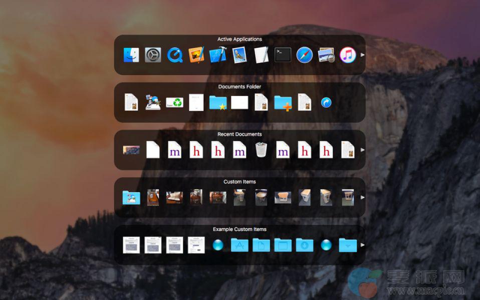 • Dock项目 – Dock中的所有应用程序,文件和文件夹