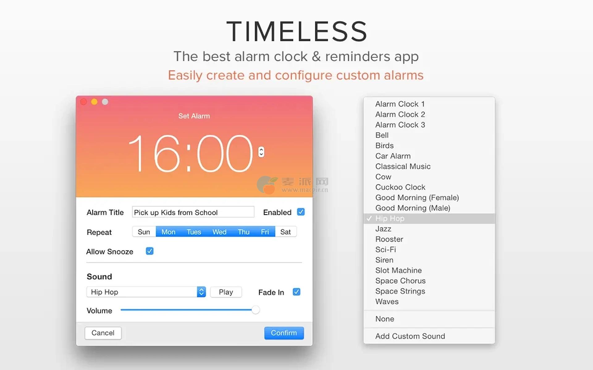 Timeless是一种优雅的方法,是macOS的提醒管理器,可以适应一天中的时间,将您的Mac变成一个时尚的桌面计时器,具有智能提醒功能。